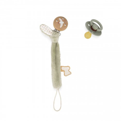 Cette attache tétine séduit par son design bi-matières :