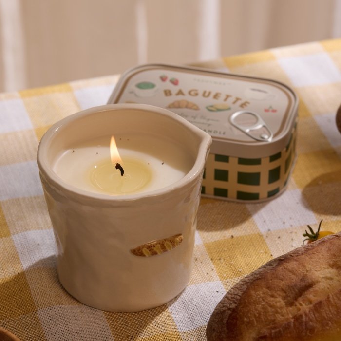 Remplissez votre maison d’un parfum gourmand rappelant les repas à la française avec cette bougie en céramique réutilisable. Elle diffuse une lumière douce grâce à ses deux mèches en coton et offre un parfum délicat de French Baguette.