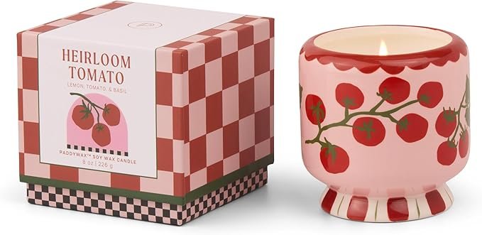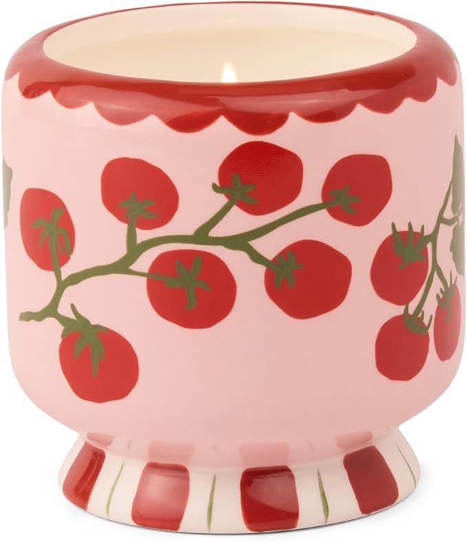 Apportez une touche d’originalité et de fraîcheur à votre intérieur avec la Bougie Adopo Tomates. À la fois décorative et parfumée, elle diffuse une douce odeur de tomates et de basilic, évoquant un jardin méditerranéen baigné de soleil. Son design coloré et son récipient en céramique peint à la main en font également un véritable objet de décoration.