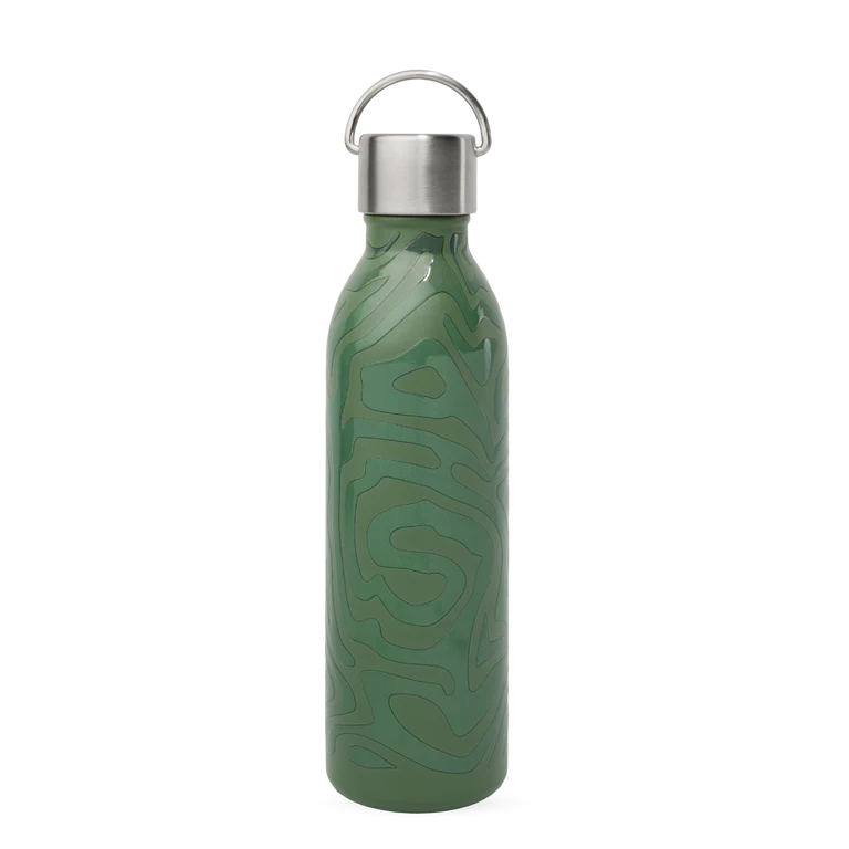 Avec son motif Camo, cette bouteille se distingue par son esthétique singulière. En effet, ce décor abstrait, presque topographique, évoque les reliefs naturels, les empreintes du vivant et une certaine poésie du silence. Ainsi, elle ne se contente pas d’être un simple accessoire : elle devient une véritable pièce de style, à la fois moderne et inspirée.