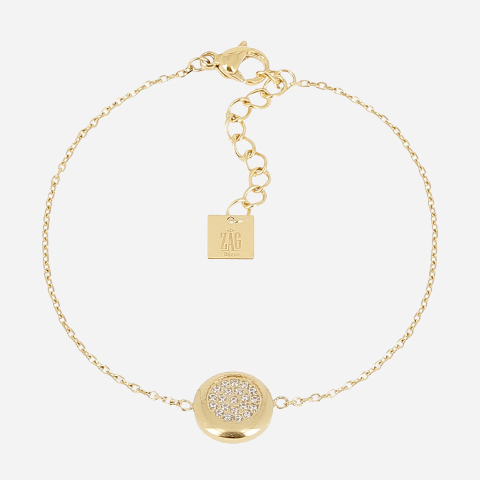 Le bracelet simple en acier doré de ZAG Paris est orné de zirconiums sertis. Avec sa chaîne ajustable (15+3 cm), il offre un ajustement parfait. Fabriqué en acier inoxydable doré, il est résistant, hypoallergénique et parfait pour ajouter une brillance subtile à vos tenues.