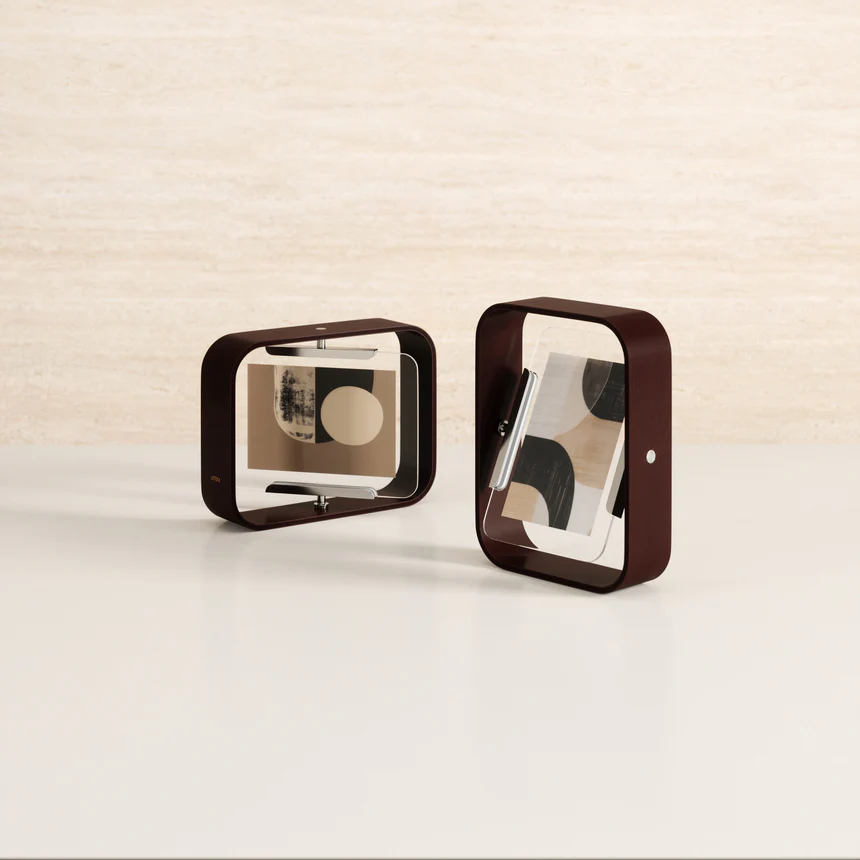 Contrairement aux cadres traditionnels, Bellwood est double face, ce qui vous permet d’exposer deux photos simultanément. Ainsi, vous pouvez varier l’ambiance de votre pièce en quelques secondes. Grâce à ce système ingénieux, vos images deviennent visibles sous plusieurs angles, créant un effet décoratif particulièrement dynamique.