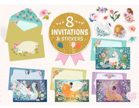 Ces cartes d’invitation sont destinées aux enfants et à leurs parents souhaitant organiser une fête sur le thème de la magie et des créatures fantastiques. D’une part, elles sont parfaites pour un anniversaire. D’autre part, elles permettent aux enfants de participer activement à la préparation grâce aux stickers, rendant l’expérience encore plus ludique.