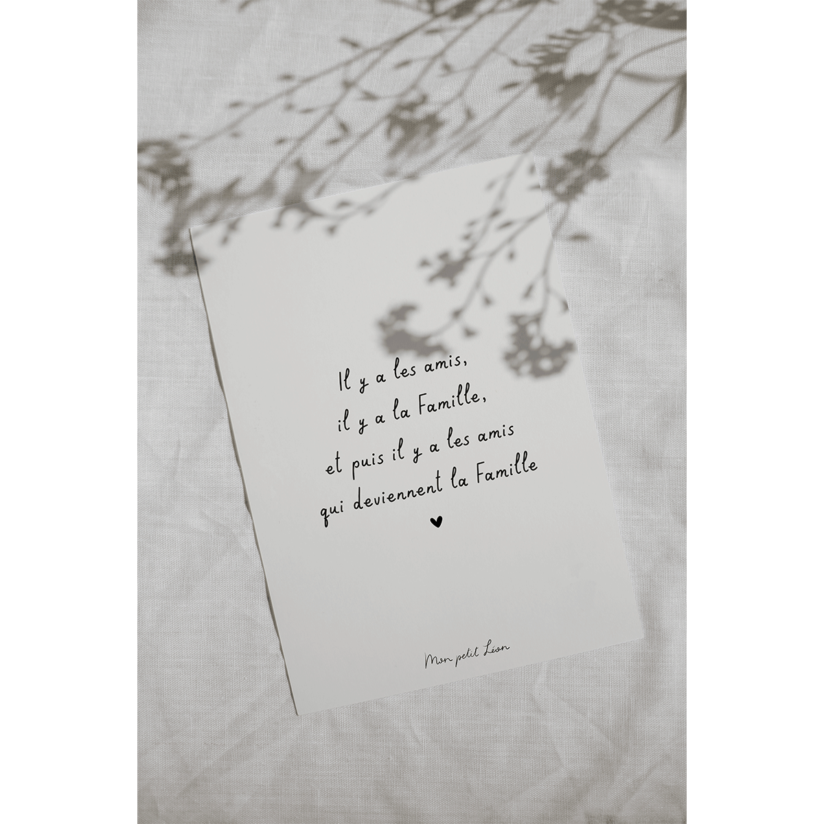 Carte A6 au design doux, sur le thème de la famille et de l’amitié. Papier texturé 300g, illustration originale. À offrir, collectionner ou encadrer pour une déco pleine de sens ♡