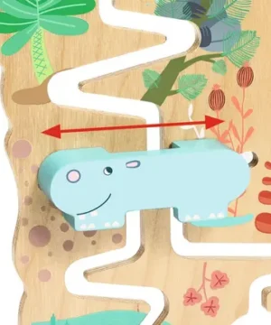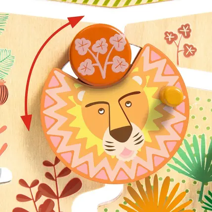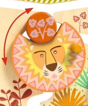 Cascade à Palets en bois pour enfants dès 18 mois. L’enfant place les palets en haut, les laisse glisser et interagit avec 3 animaux pour les libérer. Un jeu ludique, éducatif et plein de surprises !