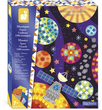 Tout d’abord, le coffret mosaïques Espace de Janod invite votre enfant à partir à la découverte des étoiles, des planètes et de l’univers spatial. Issu de la collection Les Ateliers du Calme, ce coffret créatif plonge les enfants dès 7 ans dans une aventure interstellaire, riche en couleurs et en imagination.