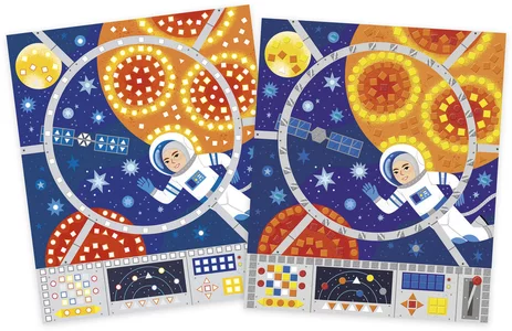 Ensuite, ce coffret permet de réaliser 5 tableaux originaux, dont deux en forme de fusée et d’astronaute. À l’aide de plus de 1 550 mosaïques pailletées, métallisées ou mates, l’enfant décore chaque illustration en suivant les indications du livret d’instructions inclus. Ainsi, il progresse pas à pas tout en prenant plaisir à créer.