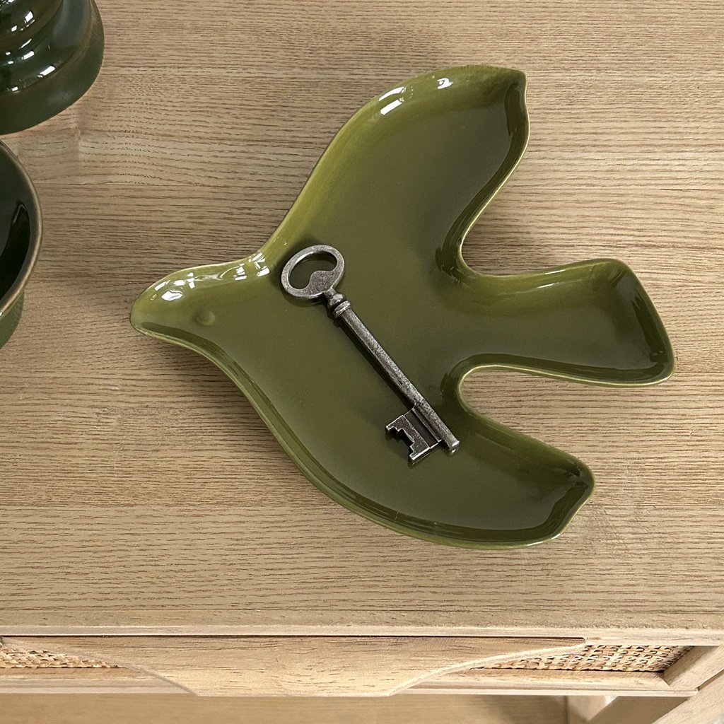 La coupelle oiseau kaki (20 × 20 × 5 cm) séduit par son design épuré et sa teinte naturelle. Idéale comme vide-poche ou objet décoratif, elle apporte chaleur et élégance à votre intérieur.