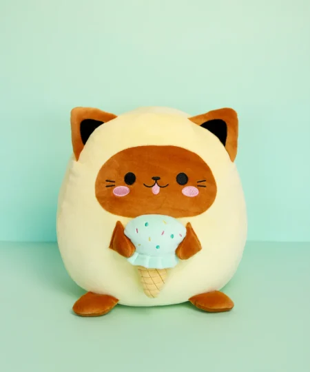 Ce coussin se distingue par son chat de style kawaii tenant un cornet de crème glacée, un détail qui ajoute une touche à la fois fantaisiste et gourmande. De plus, son univers mignon et coloré séduit aussi bien les enfants que les adolescents ou les amateurs de décoration kawaii. Par conséquent, il s’intègre facilement dans une ambiance ludique et chaleureuse.