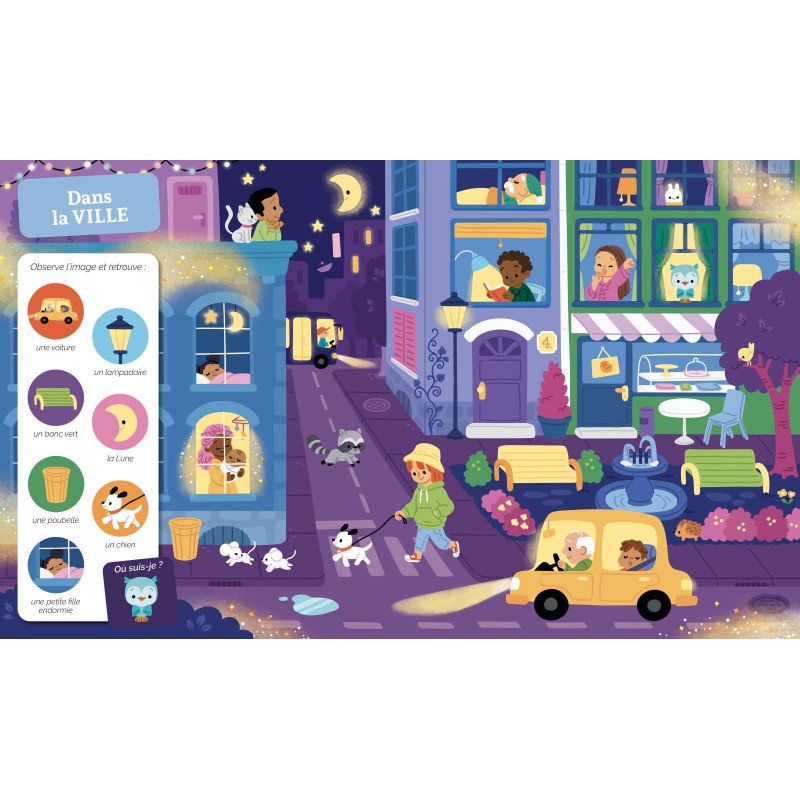 Plongez votre enfant dans l’univers magique du Cherche et Trouve Dodo. Chaque planche propose de retrouver 7 éléments cachés ainsi qu’une mascotte, stimulants l’attention et la patience. Au fil des pages, ils découvriront des animaux endormis, des étoiles filantes, Peter Pan ou encore le marchand de sable. Grâce au vernis phosphorescent, certains éléments apparaissent même dans le noir, transformant la lecture en une véritable aventure nocturne.