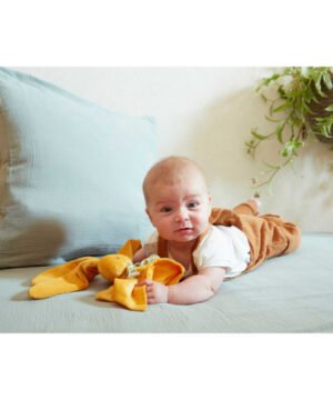 Lapin doux et câlin, idéal dès la naissance. Facile à saisir et lavable en machine, ce doudou contient au moins 80 % de matières recyclées et est présenté dans une jolie boîte cadeau personnalisable.