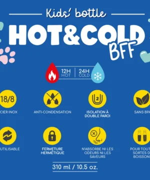 La gourde Panda 310 ml en acier inoxydable à double paroi garde les boissons chaudes ou froides pendant plusieurs heures. Légère, hermétique et résistante, elle est idéale pour accompagner les enfants au quotidien.