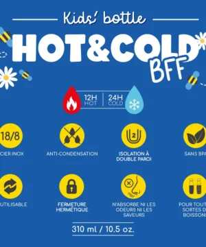 La gourde Teddy Bear 310 ml en acier inoxydable à double paroi garde les boissons chaudes ou froides pendant plusieurs heures. Légère, hermétique et facile à transporter, elle est parfaite pour accompagner les enfants au quotidien