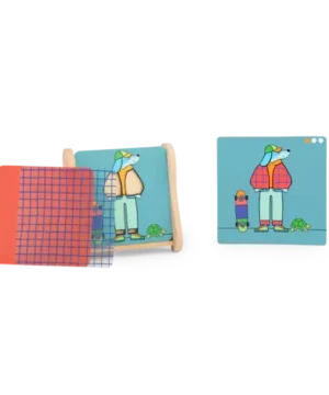Un jeu éducatif et rigolo dès 4 ans pour développer logique et créativité. Grâce à 48 défis évolutifs et des cartes transparentes à superposer, l’enfant recompose des personnages loufoques seul ou à plusieurs. Parfait pour stimuler l’observation tout en s’amusant !