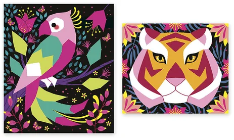 Tout d’abord, ce kit créatif Fils Tendus Jungle invite votre enfant à voyager dans un univers exotique. Il découvre ainsi un perroquet tropical coloré et un lion majestueux, tout en laissant libre cours à son imagination.