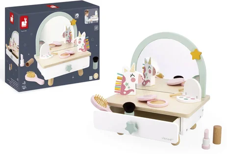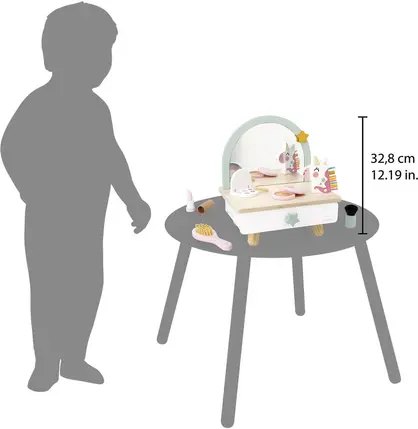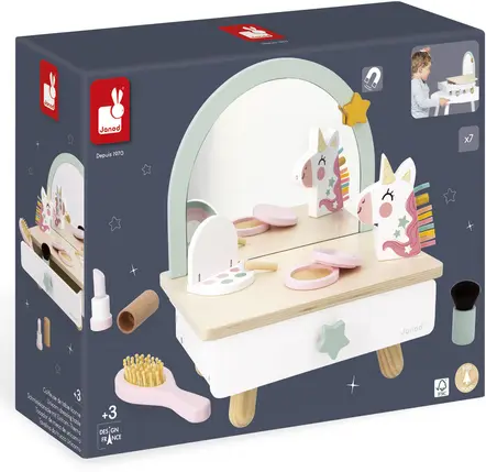 Par conséquent, la coiffeuse devient un coin de jeu interactif où chaque enfant peut s’amuser, créer et se coiffer, tout en inventant des histoires féériques et en laissant libre cours à son imagination. C’est un jouet parfait pour créer des souvenirs inoubliables.