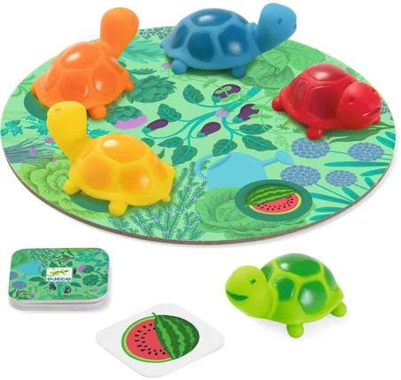 Little Memo – Garden est un jeu de mémoire amusant où de petites tortues cachent fruits et légumes dans le jardin. Grâce à des règles simples et un univers coloré, les enfants développent leur mémoire et leur sens de l’observation tout en s’amusant. Un jeu idéal pour partager des moments ludiques en famille.