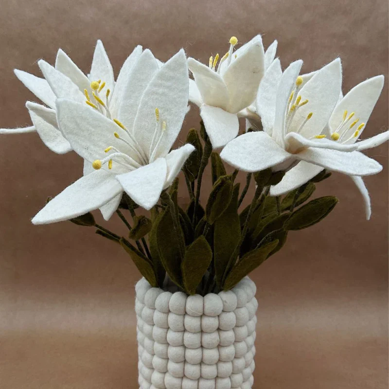 Le lys en feutrine blanche New Heidi, vendu à l’unité, est une fleur artisanale façonnée à la main au Népal en 100 % laine naturelle. Élégant, durable et sans plastique, il constitue une alternative écologique aux fleurs coupées et apporte une touche lumineuse et raffinée à votre décoration intérieure.