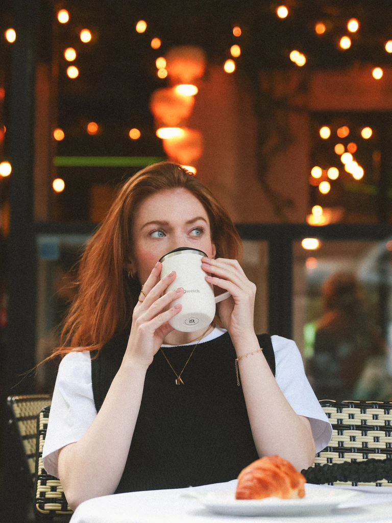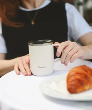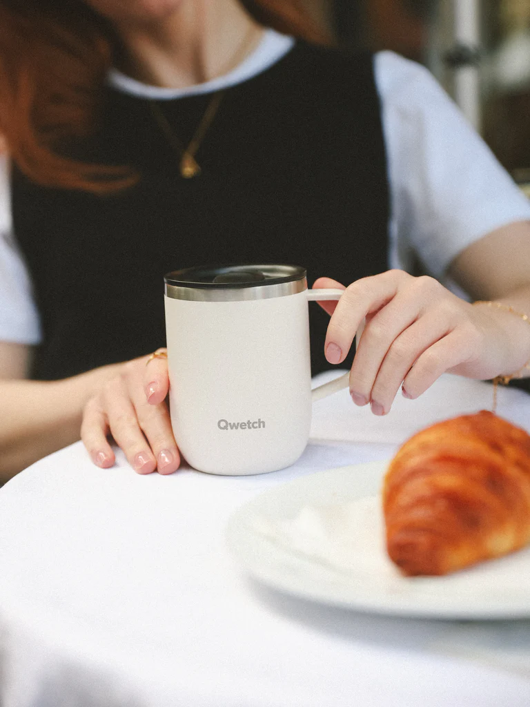 Mug isotherme en inox recyclé (90 %), avec anse pratique. Conserve vos boissons 6h chaud / 12h froid. Intérieur tout inox, sans BPA. Parfait pour la maison ou le bureau, au quotidien.