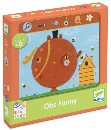 Tout d’abord, Obs Funny est un jeu de cherche-et-trouve original issu de la collection Eduludo de Djeco, spécialement conçu pour les enfants de 3 à 6 ans. À la fois ludique et interactif, il invite les plus jeunes à observer, manipuler et explorer des illustrations animées. Ainsi, grâce à un ingénieux système de roues, les images se transforment sous les doigts de l’enfant, rendant chaque partie vivante et surprenante.