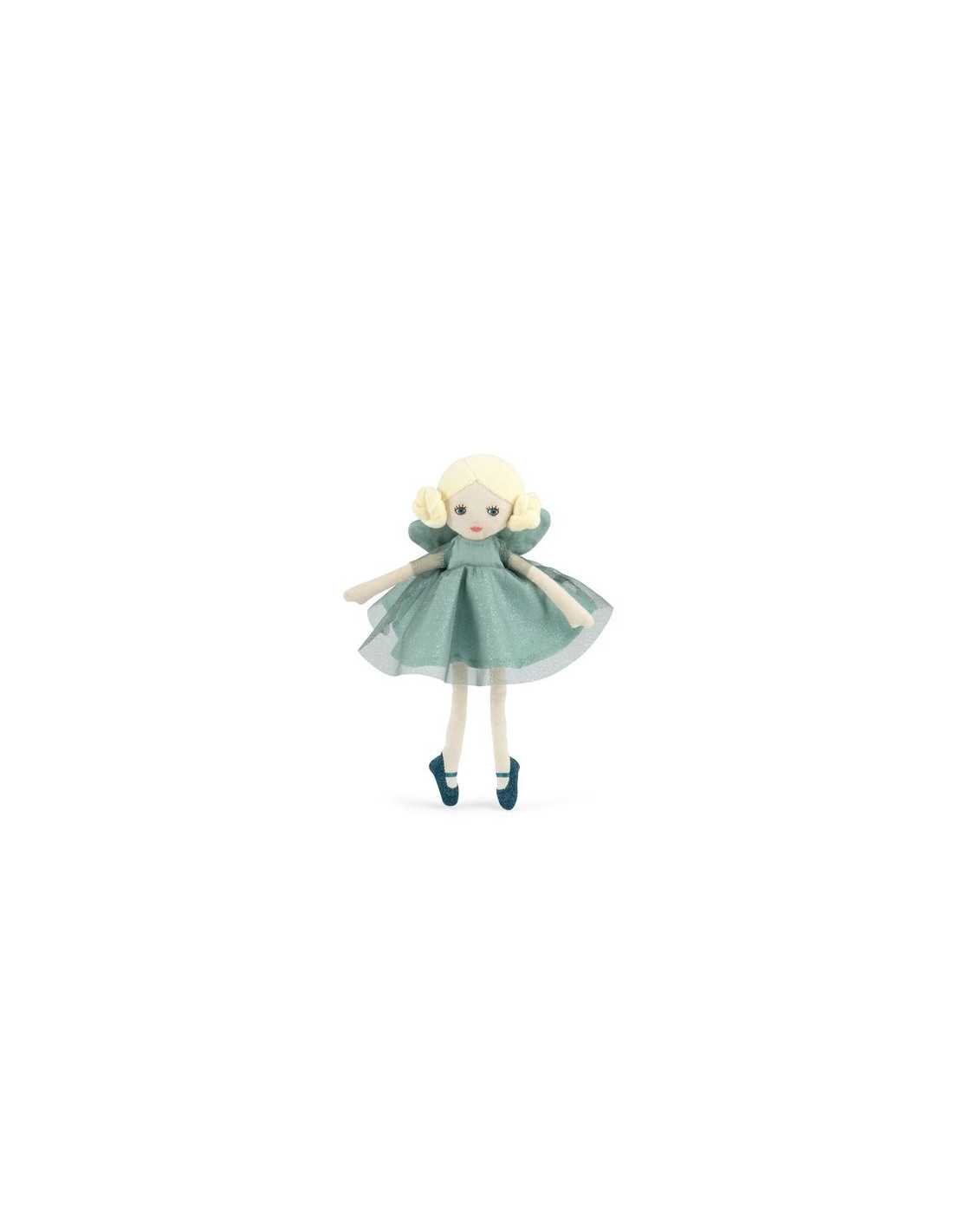 Découvrez Ondine, la petite fée verte de Moulin Roty, une adorable poupée en tissu de 26 cm, parfaite dès 10 mois. Avec son visage brodé, ses chignons en velours ornés d’une étoile, sa robe bleue en tulle pailleté or, ses ailes de fée et ses chaussons brillants, elle émerveille petits et grands.
