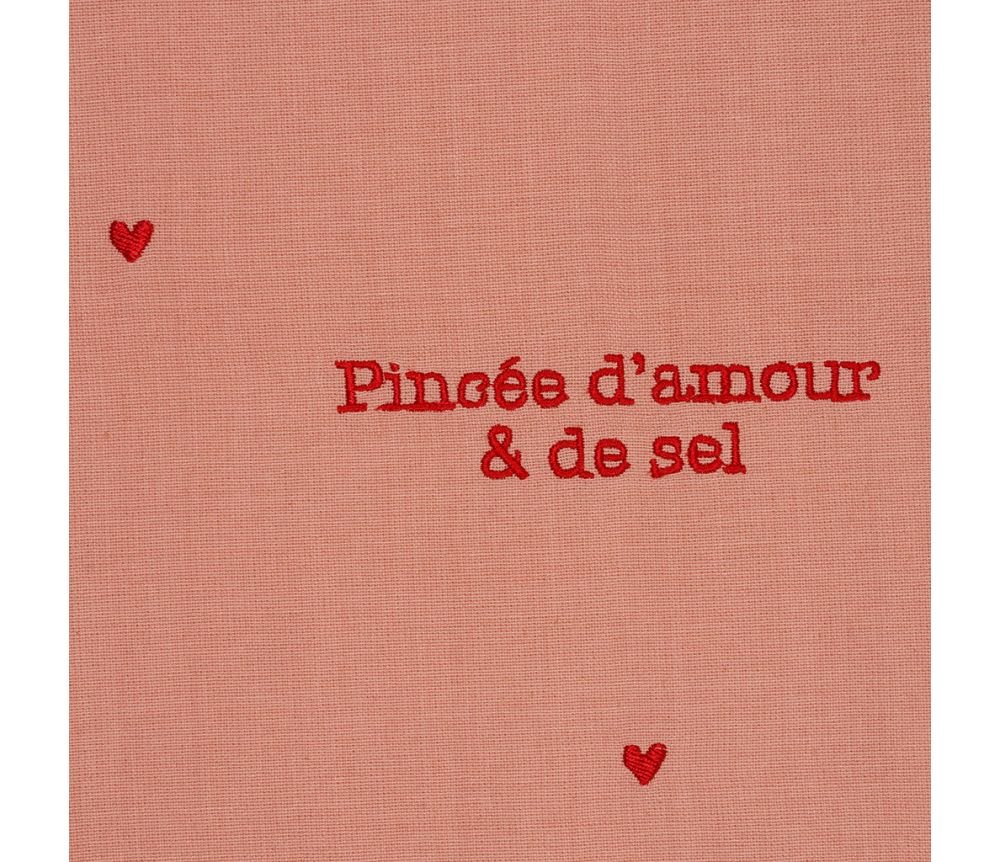 Le texte unique “Pincé d’amour et de sel” rend ce torchon original et charmant. Ensuite, sa grande taille protège vos mains et surfaces efficacement. Enfin, sa matière en coton assure confort et durabilité.