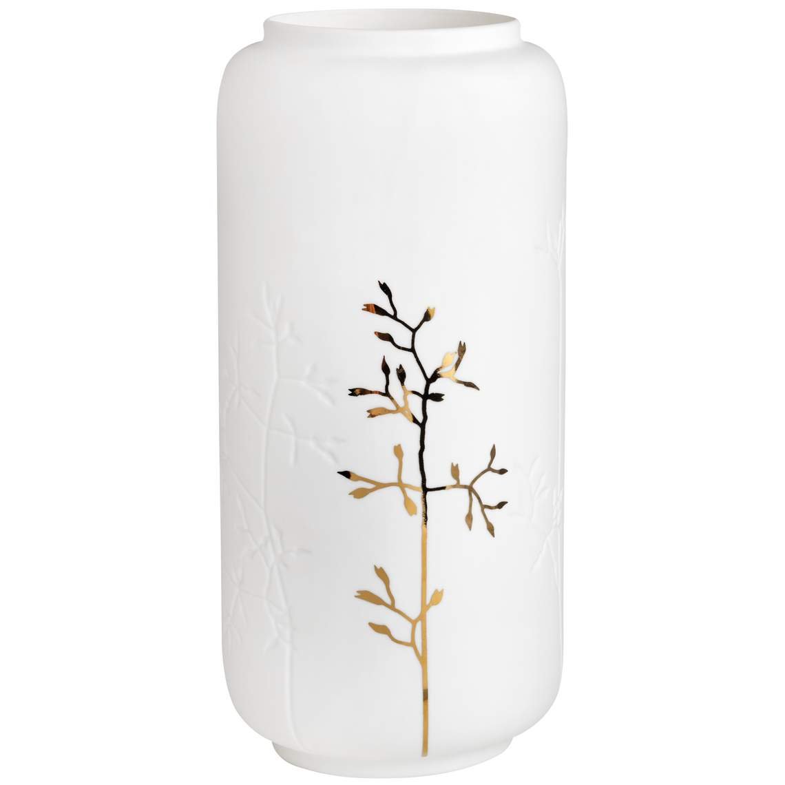 Le Vase Branche Dorée de Räder incarne la délicatesse et le raffinement à l’état pur. Haut de 21,5 cm pour un diamètre de 10,5 cm, ce vase en porcelaine blanche mate s’illustre par une silhouette sobre rehaussée d’une fine branche dorée en relief, qui court élégamment sur sa surface. Ce détail raffiné capte la lumière et évoque la poésie des saisons.