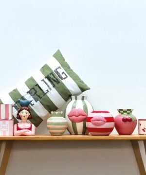 Le vase Kiss rayures vert peut être utilisé avec des fleurs fraîches, des fleurs séchées ou simplement comme objet décoratif. Par exemple, posé sur une table, une étagère ou un buffet, il apporte immédiatement une touche apaisante. Toutefois, il peut aussi être associé à d’autres pièces en faïence pour créer une composition harmonieuse.